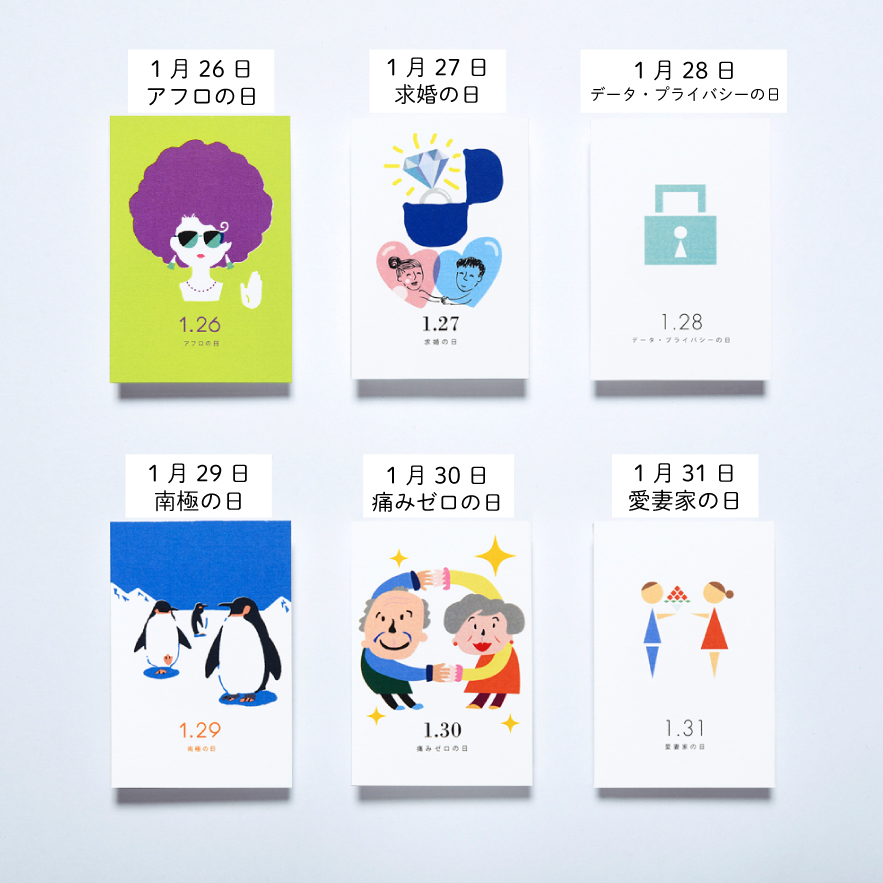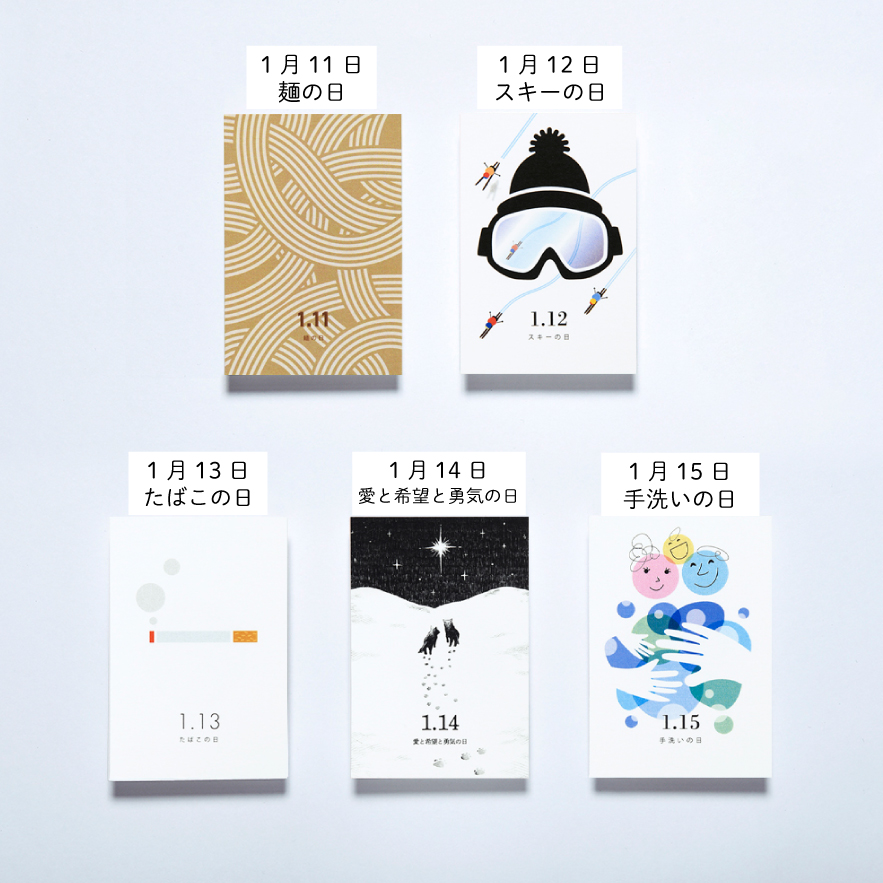 カードは1月デザインの中から、お好きな日付を10枚セレクト。